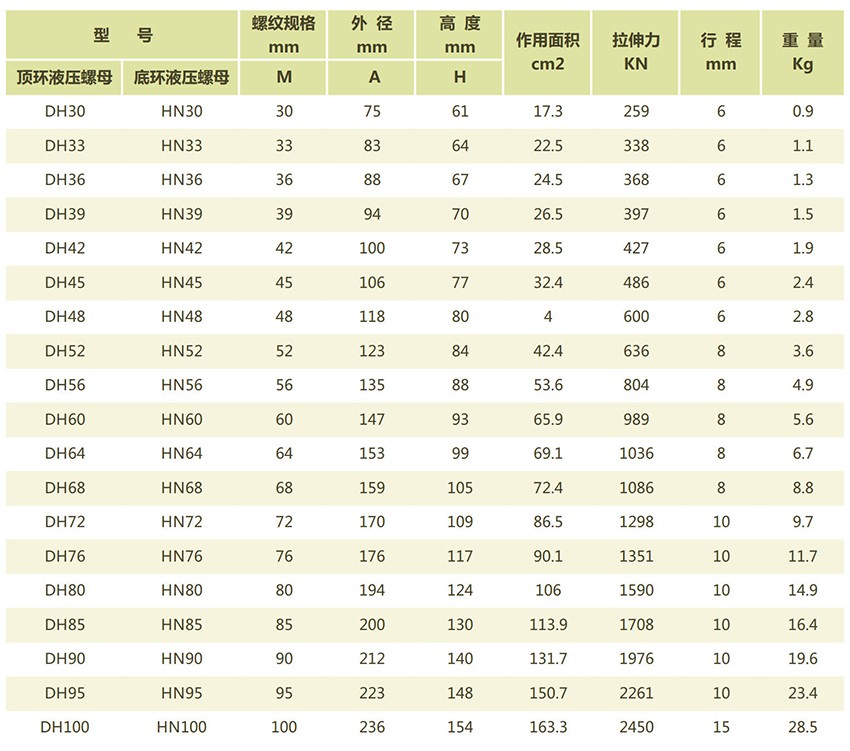產品規格:產品特點最高工作壓力 150MPa簡單、快捷、精確采用無轉矩設計,避免摩擦、螺桿扭曲等影響螺栓預緊力的因素,使被緊固螺桿僅受純拉力特別適合重負荷,有機械振動的緊固設備帶有行程指示線,允許操作過程中觀察、測量、控制螺桿拉伸量可以精確設定預載荷,精度高達±3%應用行業船舶工業、石油化工、風電、水電、熱電、礦山、機械、鋼廠、橡膠、管道等行業