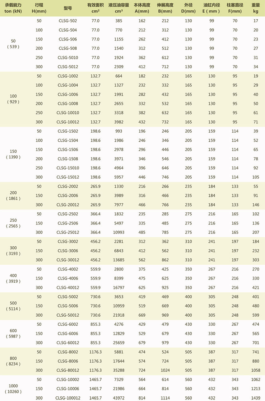 CLSG大噸位單作用液壓千斤頂選型表