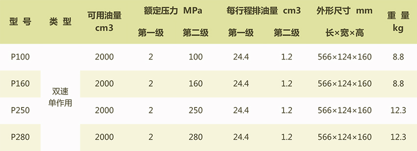 超高壓手動泵(100-280MPa)選型表