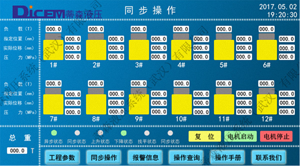 同步頂升系統,其核心電氣控制系統,是由德國西門子PLC可編程控制器組成,通過高性能控制器檢測位移以及壓力數據,根據傳送控制指令,驅動閥組的開合頻率,使液壓千斤頂進行工作。實時的壓力信息和位移閉環數據高速傳輸反饋給電腦控制系統,從而精準控制各液壓千斤頂在升降時的動作負載均衡。