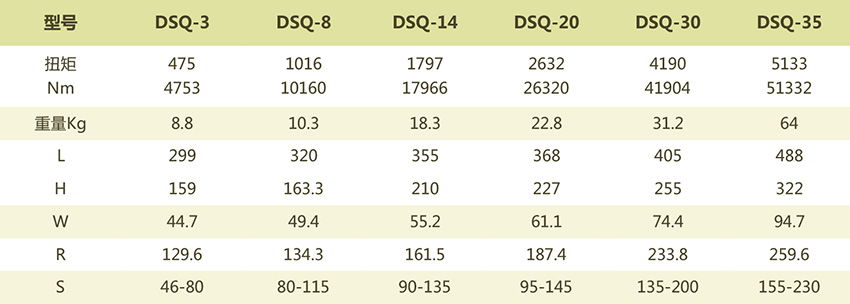 DSQ裂口液壓扭矩扳手選型表